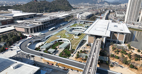 温州龙湾国际机场交通枢纽综合体工程包括温州机场交通枢纽综合体、温州市域铁路S1、S2线机场站及区间隧道、温州机场高架进出场线及地面道路部分。工程总造价约35亿元,工程建成后系统地实现轨道交通、高铁、地面及高架道路一体化的综合交通枢纽。同时,在建的温州机场交通枢纽与远期开发的温州高铁东站、温州轨道交通M2线可实现零换乘,大大提升出行效率。